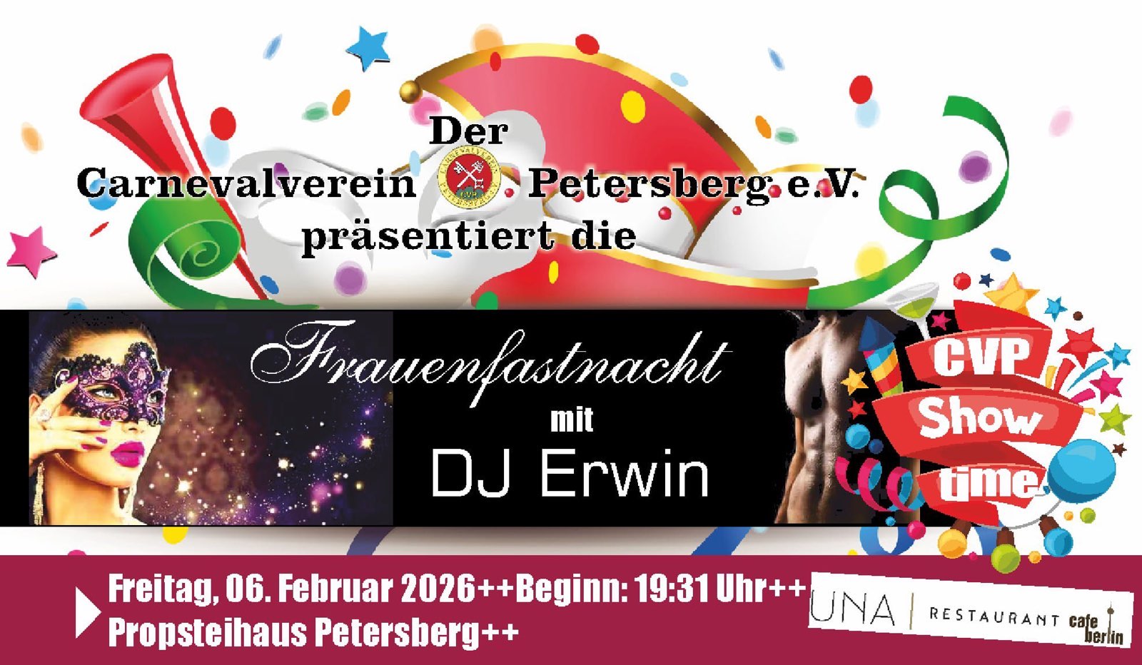 Mädels, macht euch bereit! Am Freitag, den 06. Februar 2026, verwandeln wir das Propsteihaus wieder in die ultimative Partyzone. Der Carnevalverein Petersberg e.V. lädt alle Närrinnen zur legendären Frauenfastnacht ein!