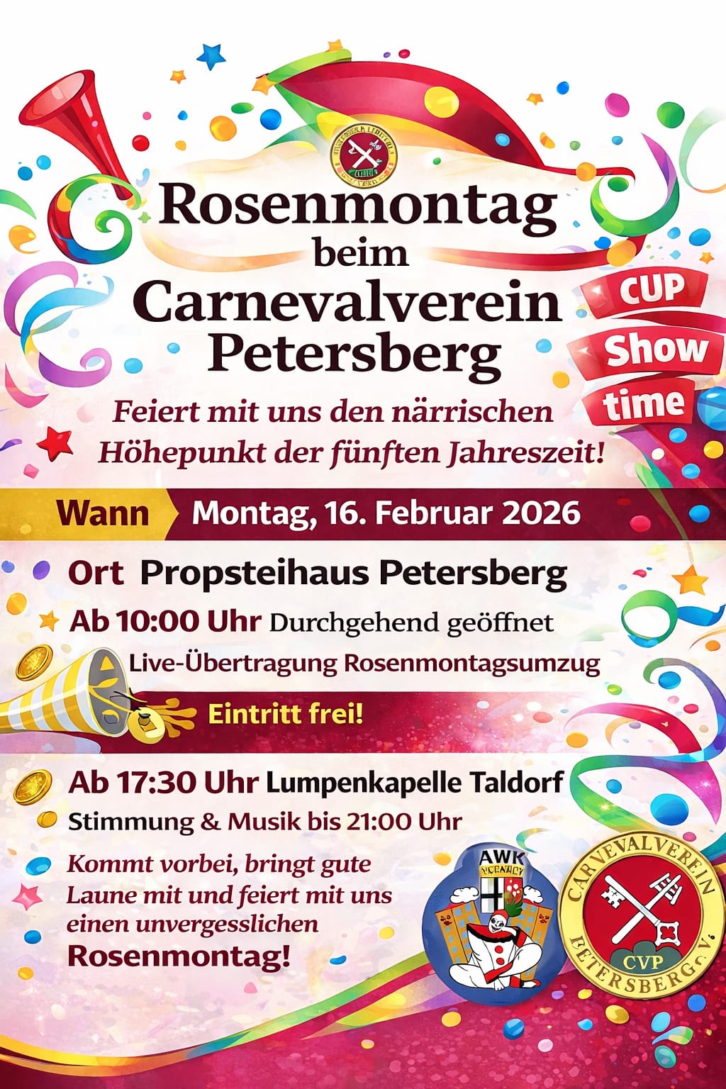 Liebe Mitglieder und Freunde des Carnevalverein Petersberg,